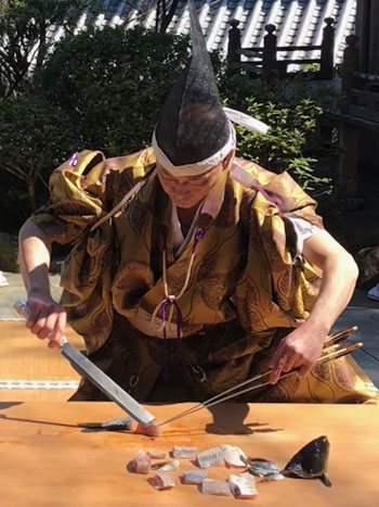 平成31年3月8日厳島大本山大聖院内包丁塚前にて、日本包丁道大草流広島支部が包丁供養並びに鳥獣魚類慰霊法要が執り行われました。